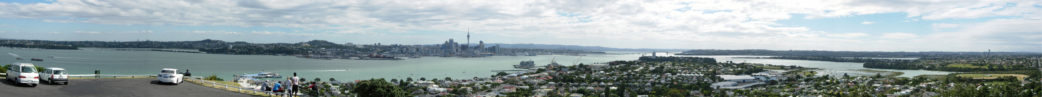Af en toe vind ik het leuk om panoramafoto's te maken. Je doet dat door een nette serie overlappende foto's te maken, die je later met een speciaal programma aan elkaar plakt. Bij Nikon en Canon camera's krijg je zo'n programma gratis. Eigenlijk moet je de foto's vanaf een statief nemen, maar dat heb ik zelden mee op vakantie. Vandaar dat de horizon in het panorama van Auckland niet helemaal recht is. Belangrijk is vooral dat de belichting van alle foto's gelijk is, anders krijg je naden te zien. Met een spiegelreflexcamera betekent dit dat je handmatig moet belichten. Veel compactcamera's, zoals de Nikon waarmee onderstaande foto's zijn gemaakt, hebben een speciale panoramastand.